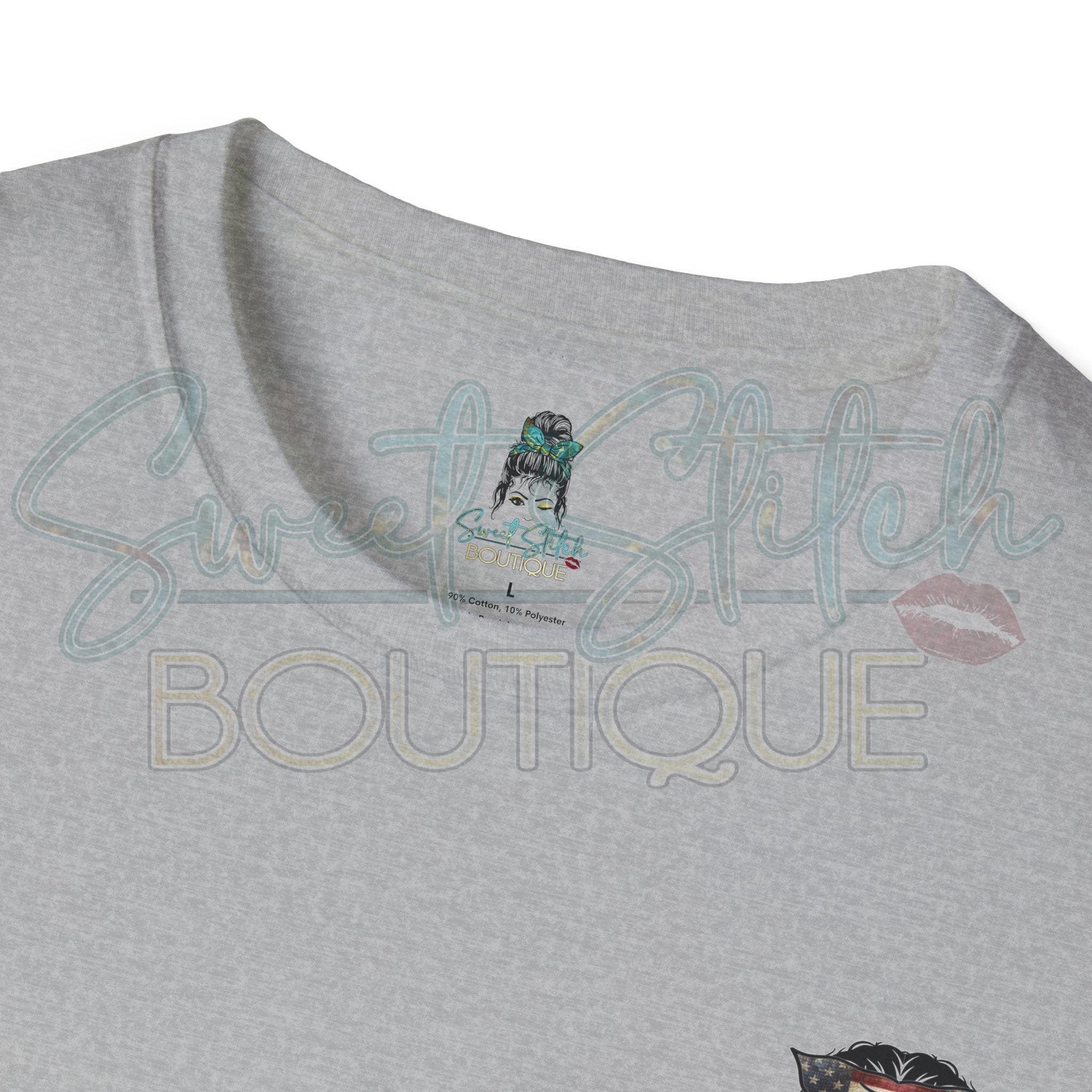 "Raising Wolves NOT Sheep..." American Mom Design {Front & Back Print} -- Unisex Softstyle T-Shirt